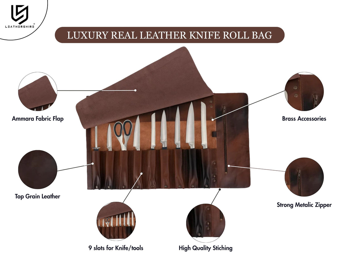 Made in Top Grade Real Cow Hide Naked Leather. Top Quality Workmanship. Material: 100% Full Grain Leather. There are 2 adjustable buckles 9 deep pockets and 1 YKK Zip Pocket handmade Lightweight Simple to Clean comfortable leather handle high quality Leather Adjustable Shoulder Strap Colour Dark Creamy Blue fine quality leather easy to Use easy to walk Cool gift for your loved ones who loves professional and Luxury Gift. Leather Roll will last for years because of high quality. One internal Pockets for needy things