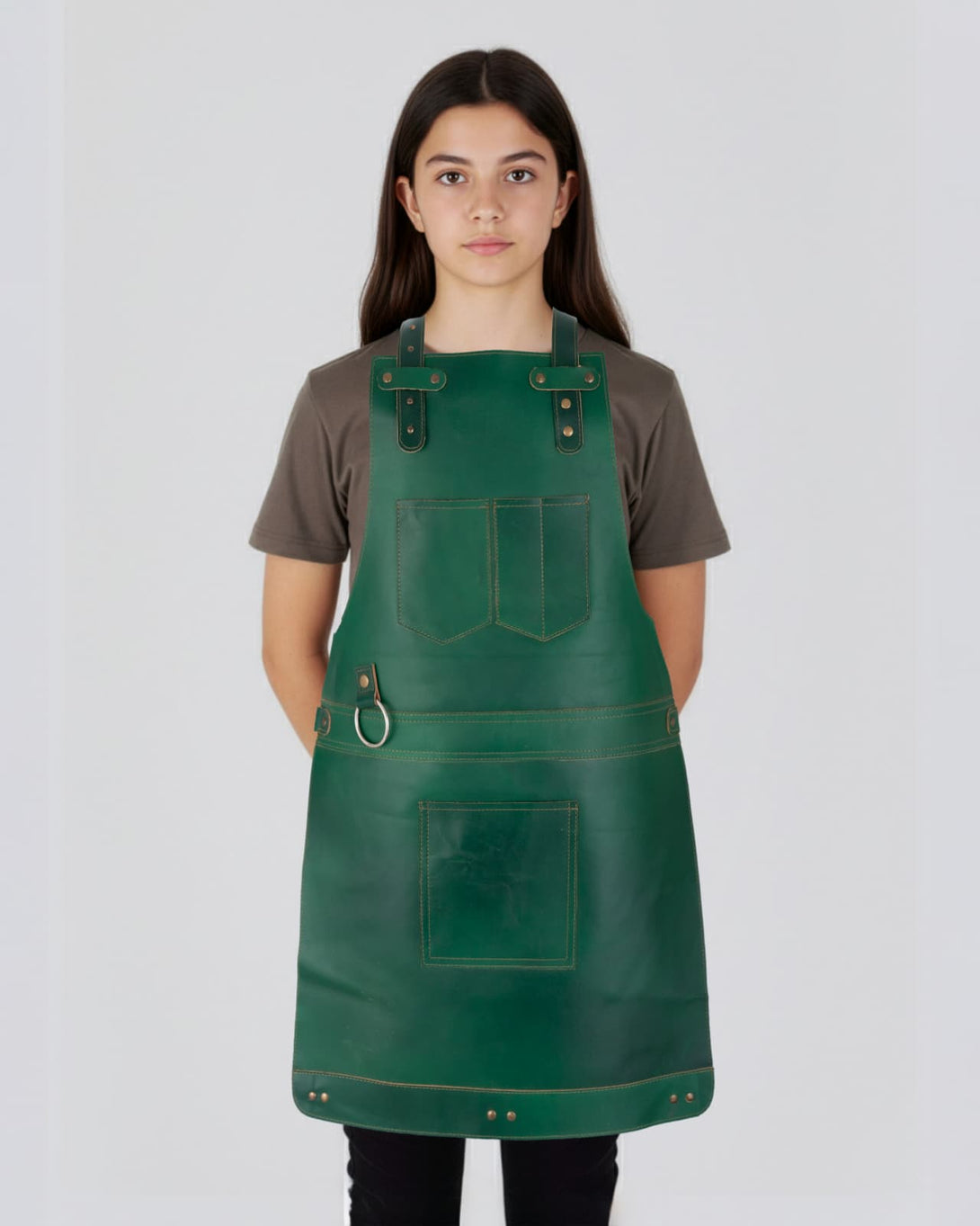 This apron is a top choice for those who adore luxury items. It's crafted from thick and long-lasting cowhide leather, featuring a rare distressed stonewash appearance that's a gem in real leather. Rest assured, the quality of this apron will exceed your expectations!