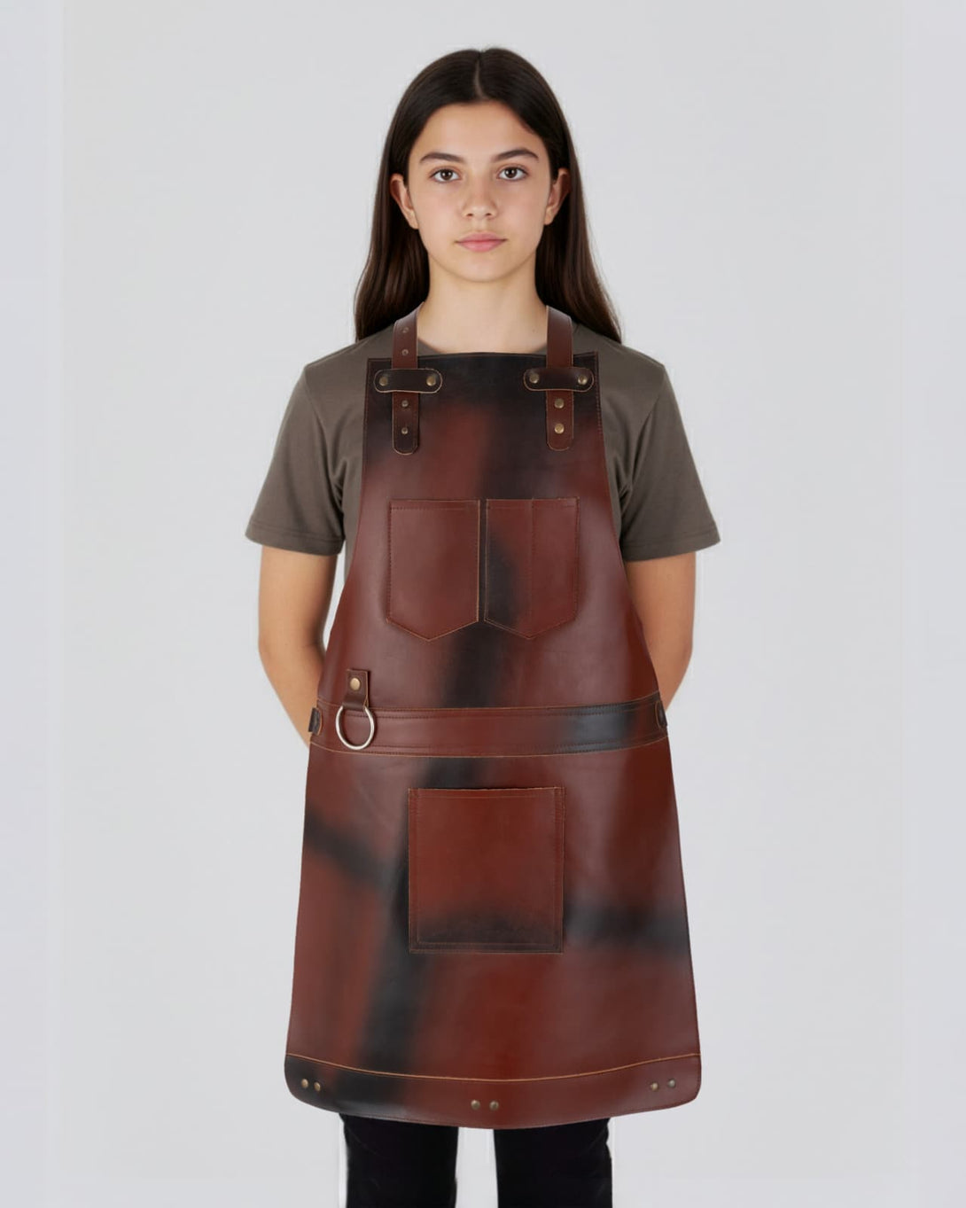 This apron is a top choice for those who adore luxury items. It's crafted from thick and long-lasting cowhide leather, featuring a rare distressed stonewash appearance that's a gem in real leather. Rest assured, the quality of this apron will exceed your expectations!