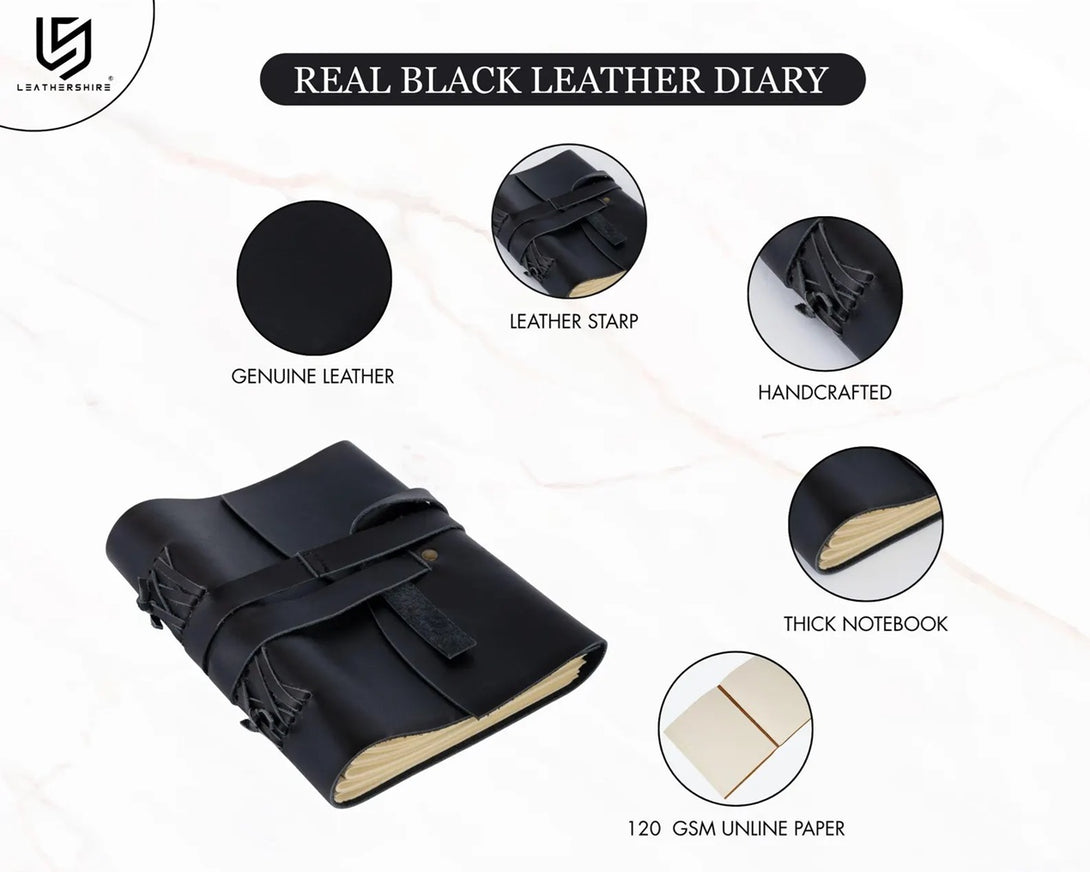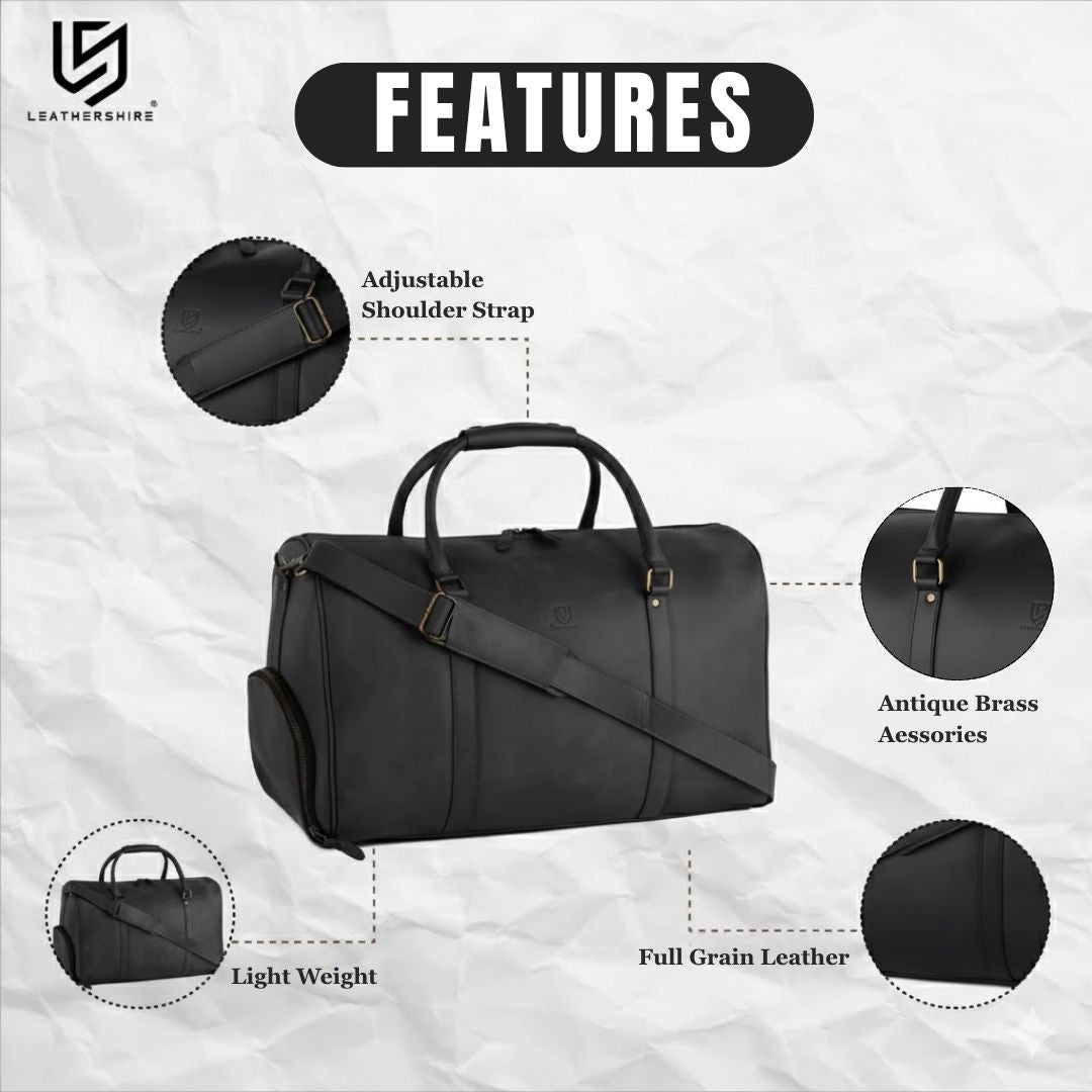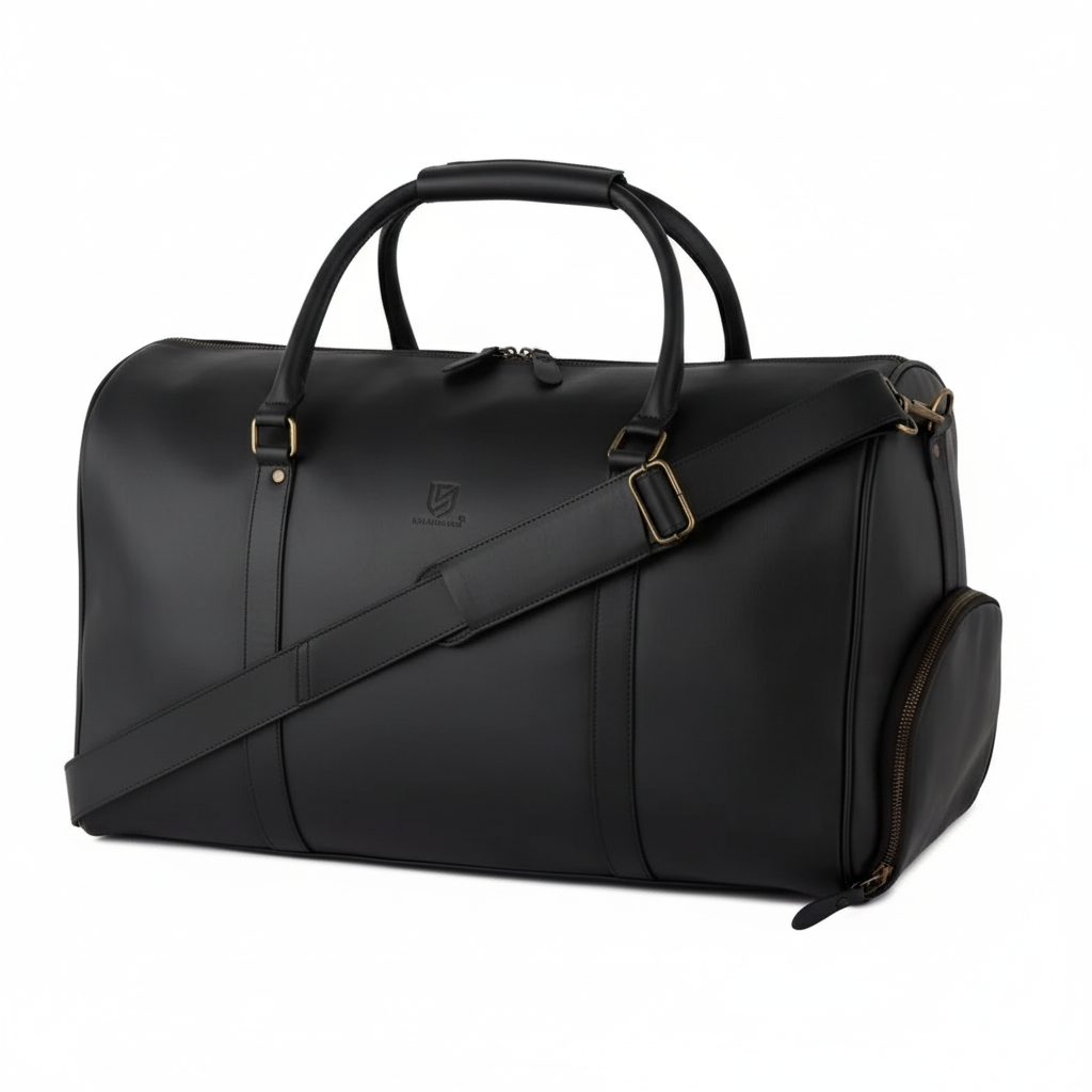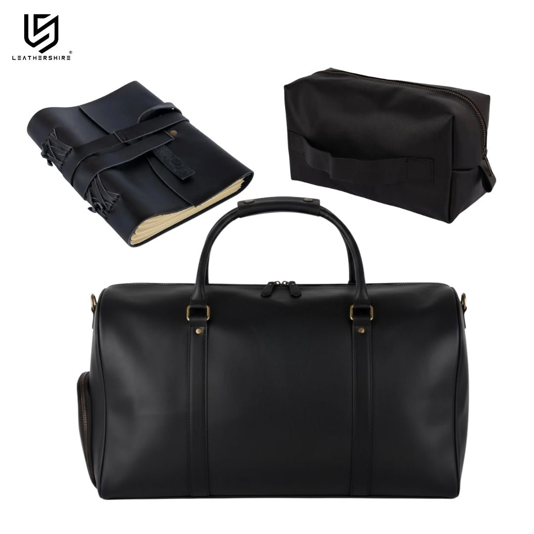 The Ultimate Travel Kit (3-in-1) Black Leather Duffle Bag with Leather Shaving Bag & Leather Journal