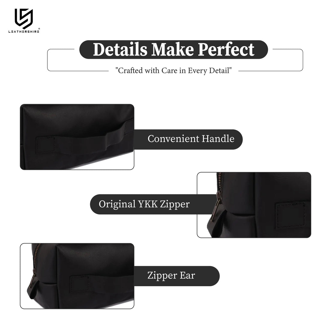 • Compartments: Helps organize razors, creams, and other grooming essentials.