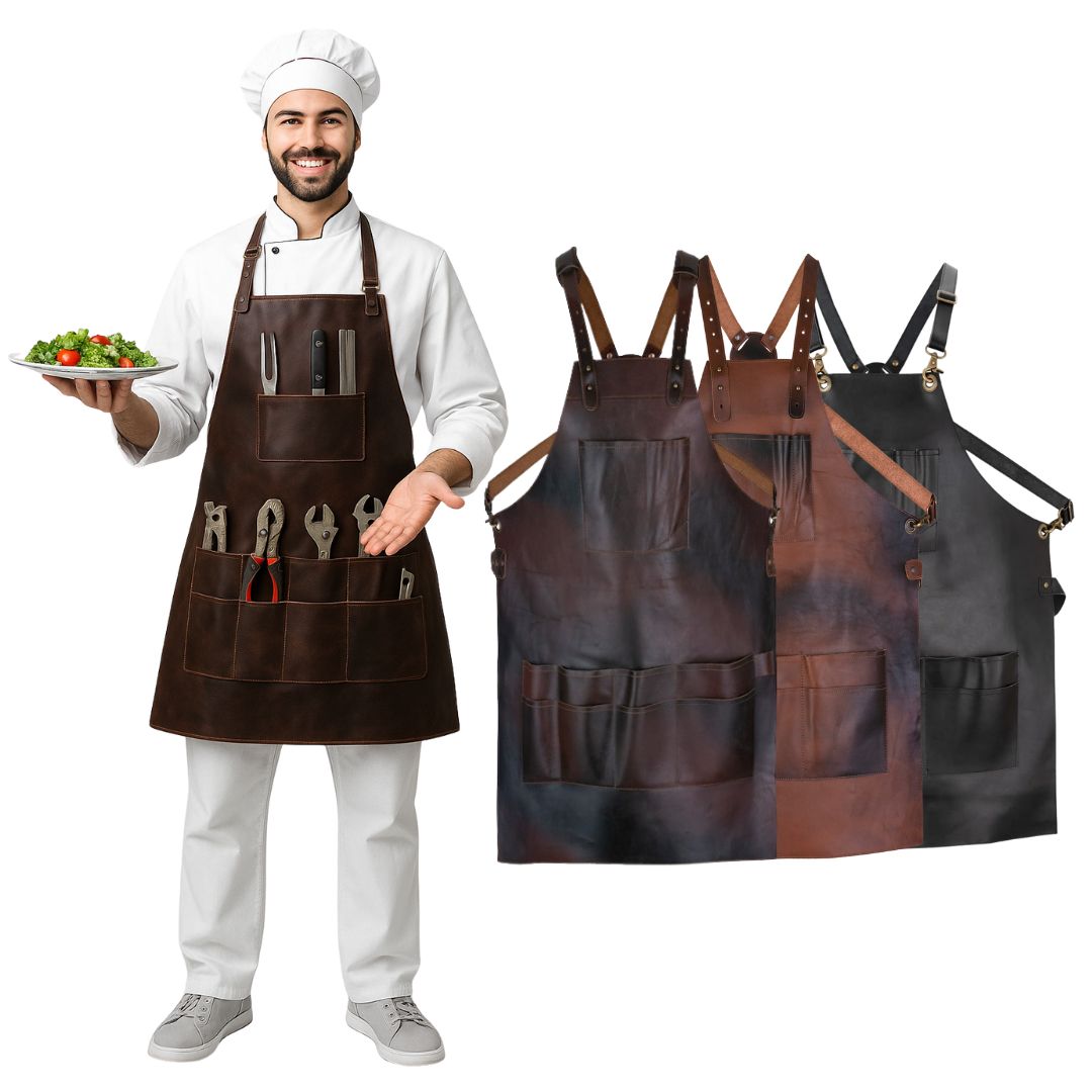 This apron is a top choice for those who adore luxury items. It's crafted from thick and long-lasting cowhide leather, featuring a rare distressed stonewash appearance that's a gem in real leather. Rest assured, the quality of this apron will exceed your expectations!