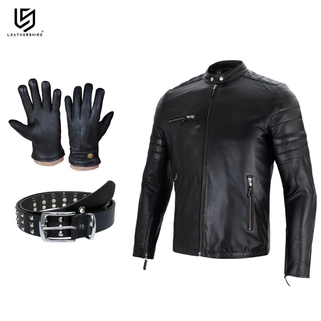 The Gentleman’s Style Box (3-in-1) Black Leather Jacket with Leather Gloves & Leather Belt